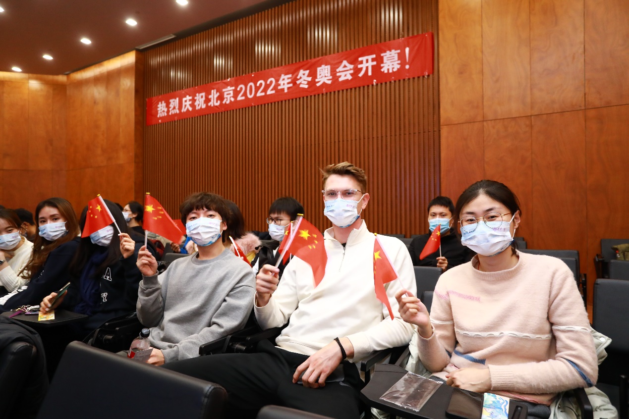 来自10余个国家、20余个院系的47名国际学生参与了集中观看。人文学院2019级博士生、来自匈牙利的郝璐璐(Lulu)表示,开幕式的精妙设计让各国人民领略到了中国传统文化的博大精深,线下集中观看的氛围非常好,师生彼此之间分享着自豪和喜悦之情,让我们一起为北京冬奥会加油!