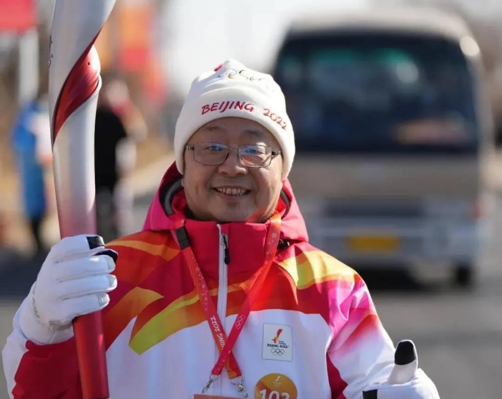 2月4日,清华创新领军工程博士、北京城建集团有限责任公司总工程师李久林作为火炬手在北京大运河森林公园参与冬奥火炬传递。
