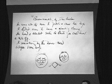 在出版座谈会上,莫芝宜佳女士向大家展示了很特别的一页笔记,上面画着两个头发稀疏、长着圆圆脸、戴着圆圆眼镜片、抿着嘴的小老头。“这是难得一见的涂鸦。像钱先生吧?可他当时还是个年轻人。”莫律祺说,翻看外文笔记,就像是和一个“非常有趣”的人对话,他把笔记中钱先生录下的一首英文打油诗念给大家听:“Therewas a young lady from Niger.Who smiled as she rode on a tiger.They returned from the ride.With the lady inside,And a smile on the face of the tiger.(从前有个来自尼日尔的年轻女士。骑着老虎,她露出微笑。骑了一圈返回,女士已经到了老虎肚子里。老虎的脸上露出微笑。)”念着朗朗上口的带着[藜]音韵脚的诗歌,跟随着诗歌的意境,莫律祺脸上浮现出笑容。