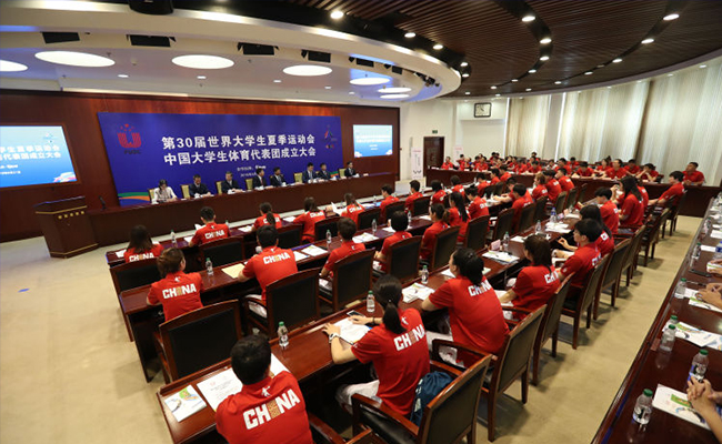 6月21日,第30届世界大学生夏季运动会中国大学生体育代表团成立大会在教育部举行。