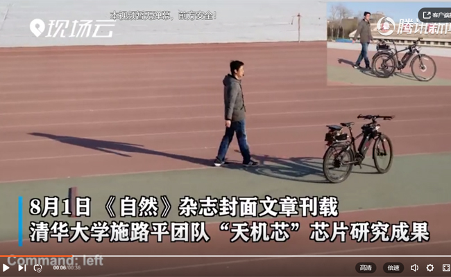 进入实验阶段,施路平团队用一块“天机芯”作为一辆无人驾驶自行车的“大脑”,进行了包括视觉目标探测、目标追踪、自动过障和避障、自适应姿态控制、语音理解控制、自主决策等功能在内的跨模态类脑信息处理实验。