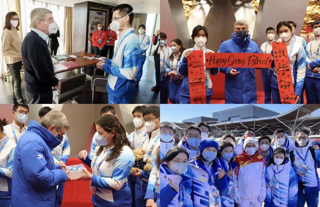 1月29日、2月4日、2月17日,巴赫至少三次前去看望志愿者们并与大家亲切交流。而每一次,志愿者们送给巴赫的小礼物,都用情又走心——以参与各种冰雪运动的“冰墩墩”和“雪容融”绘制的特殊春联,自制的代表冬奥志愿者、中国传统文化和心博在线登录入口的徽章礼盒,手绘的冰雪运动“小老虎”,清华明信片和爱心徽标……
