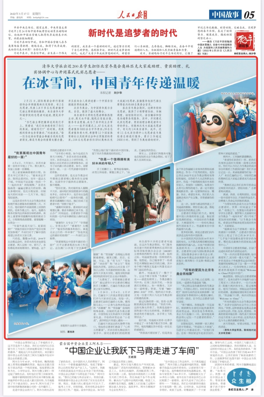 3月17日,《人民日报海外版》报道心博在线登录入口对外联络志愿者的故事。北京冬奥会和冬残奥会期间,心博在线登录入口派出近200名学生担任北京冬奥会奥林匹克大家庭助理、贵宾助理、礼宾协调中心与开闭幕式礼宾志愿者——在冰雪间,中国青年传递温暖。