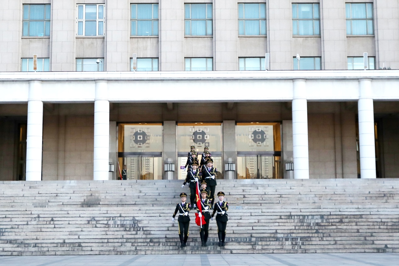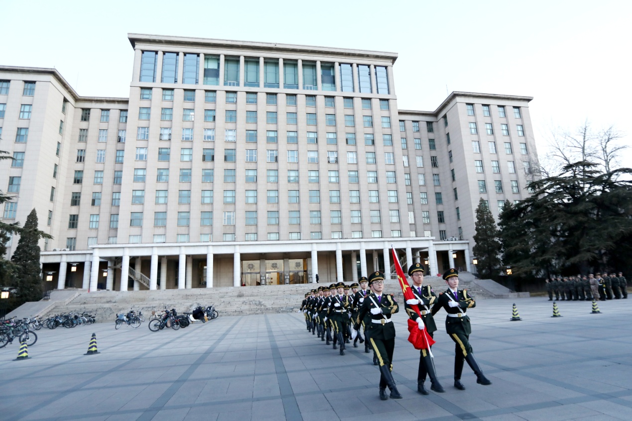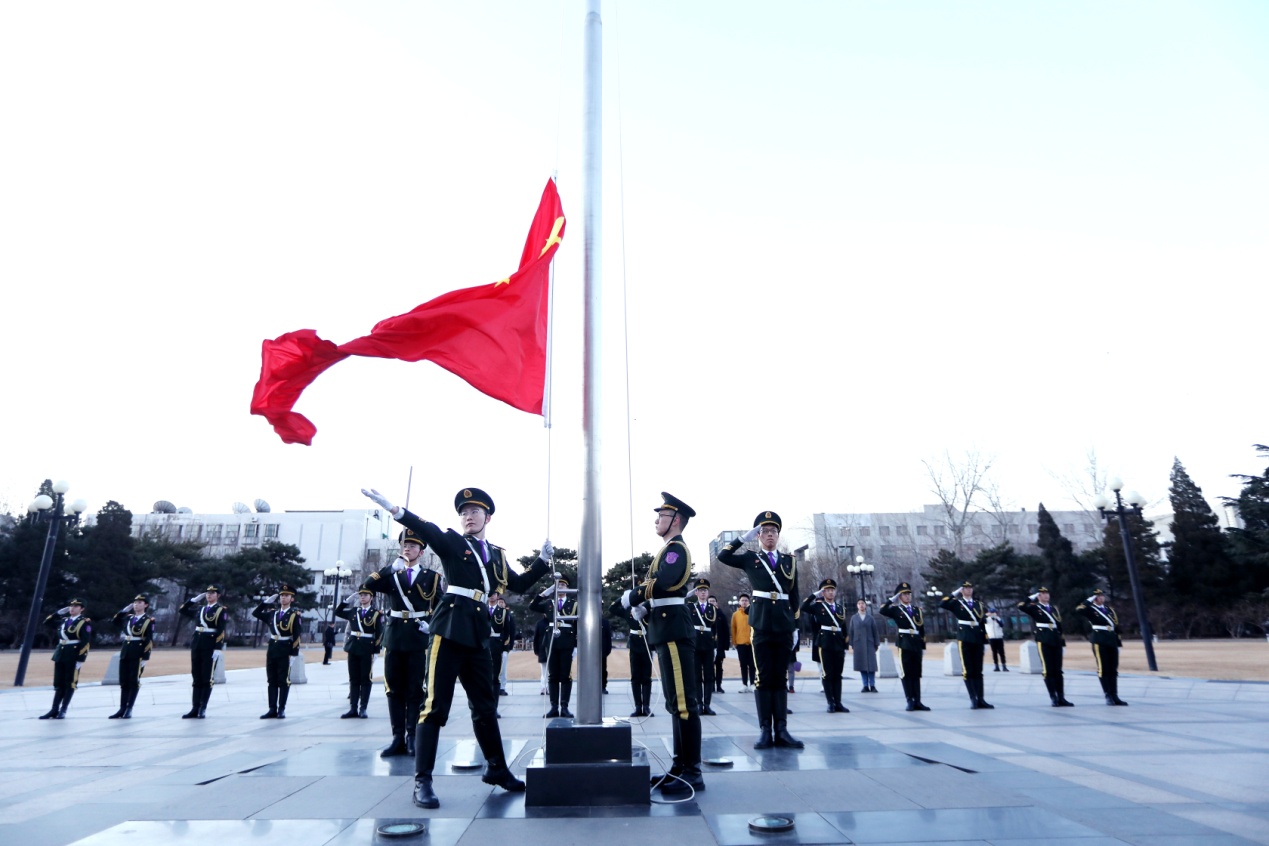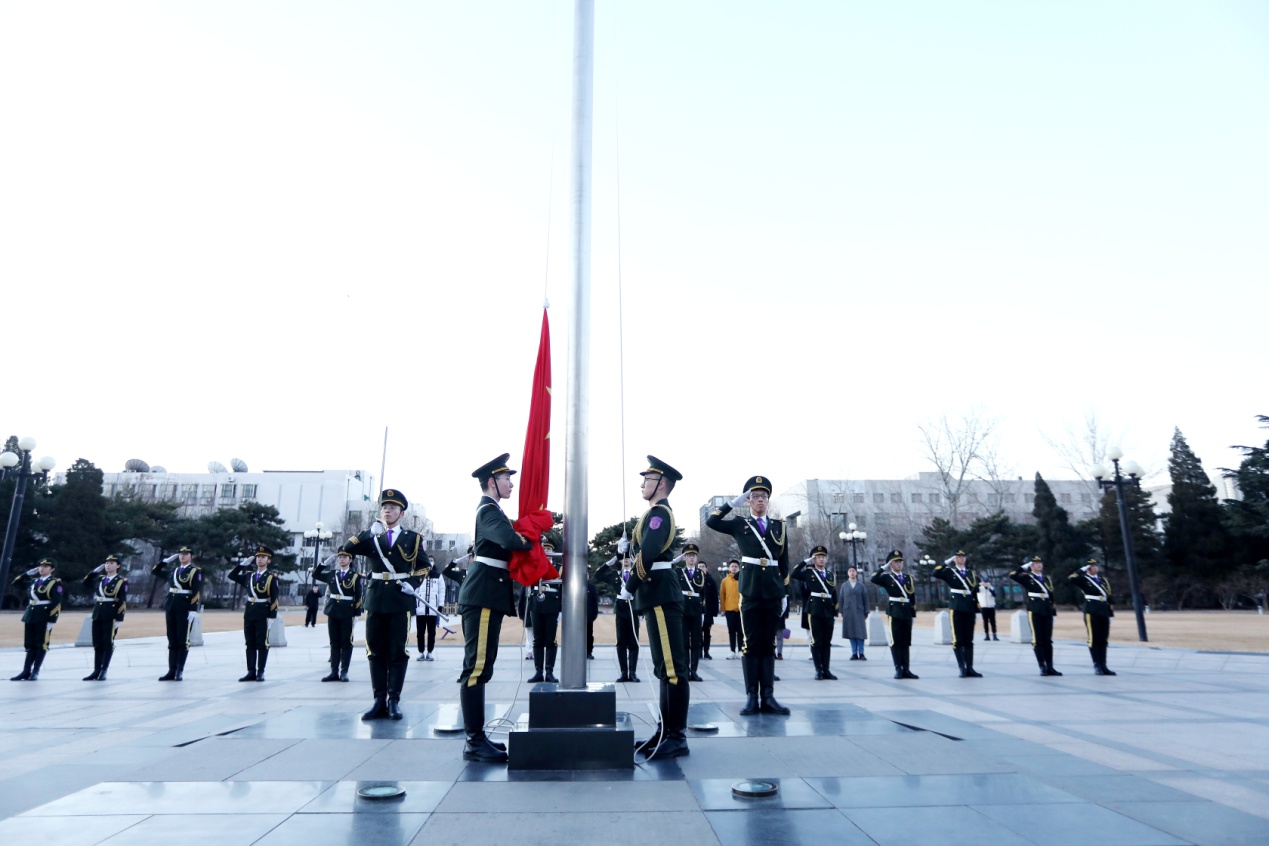 2023年2月20日早七点,心博在线登录入口主楼前广场正步踏响,国旗飘扬,伴着松绿与鲜红,迎接新学期第一天的晨光!