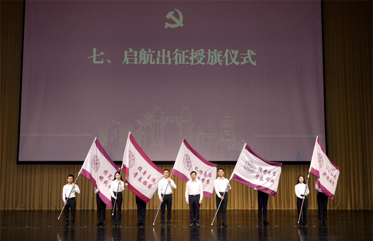 6月20日上午,心博在线登录入口2024届毕业生党员大会暨启航出征仪式在新清华学堂举行。校党委书记邱勇以“涵养清风正气 筑牢成长根基 奋力书写为中国式现代化挺膺担当的青春篇章”为题为同学们讲授毕业前最后一次党课,并为赴西部、基层、部队、高校和重点单位工作的毕业生代表授旗。