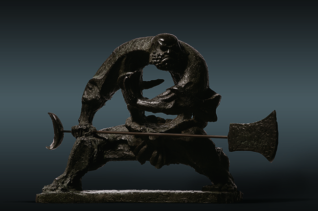 顾黎明 《持锤门神——蓝色版 》 195x114cm 布面油彩 2016