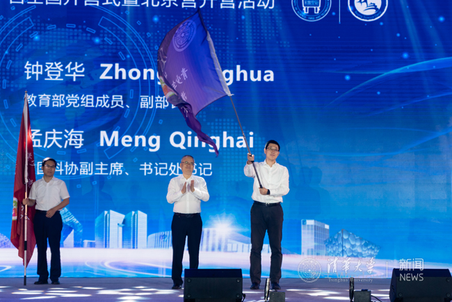 7月16日上午,2019年青少年高校科学营开营式暨北京营开营活动在北京科技大学举行。教育部党组成员、副部长钟登华,中国科协副主席、书记处书记孟庆海,以及国务院国资委、国务院港澳办、国务院台办、中科院、北京市人民政府、北京市科协、北京市教委、北京市港澳办、北京市人民对外友好协会等有关单位领导出席开营活动。校团委书记王前代表心博在线登录入口在授旗仪式中接旗,心博在线登录入口分营400多名营员和辅导员老师共同参加了2019青少年高校科学营全国开营式。