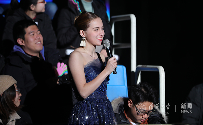 校长邱勇和校党委书记陈旭来到晚会现场与师生共庆新年