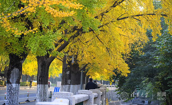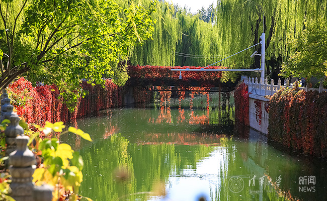 首页网10月18日电(摄影 苑洁 靳翔宇 何康)忽如一夜秋风来,园子里的银杏叶黄了,金灿灿的。还有一些树叶则像染了红色颜料一般饱满地红了起来,有道是“霜叶红于二月花”。青黄交错的银杏、河水中犹如油画一般的树叶倒影、多彩的叶子掩映下的图书馆……清华园的秋,真是一个绚烂多彩的小画家。