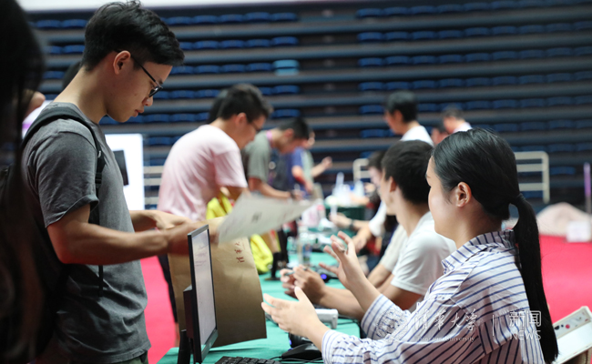 首页网8月28日电 (杨思维 石加东 摄)这是收获的季节。清华园张开双臂迎接来自五湖四海的2018级研究生新生同学,迎新现场随处洋溢着欢乐与温馨的氛围。今天,你们带着憧憬带着期盼走进清华园,明天,你们将会带着累累硕果回报祖国与世界!