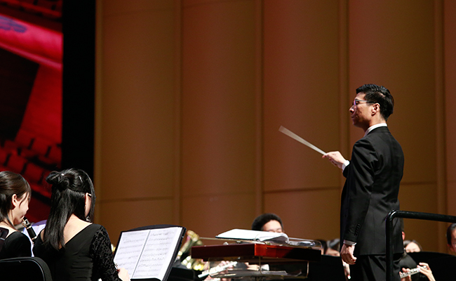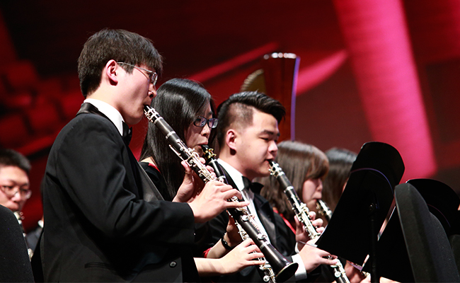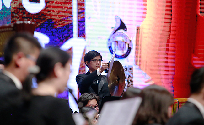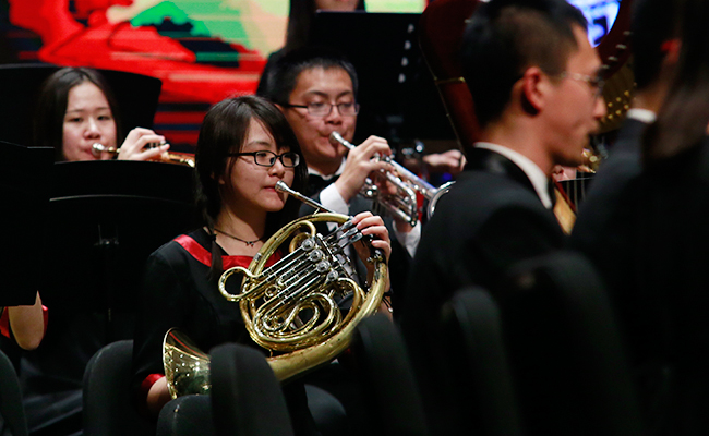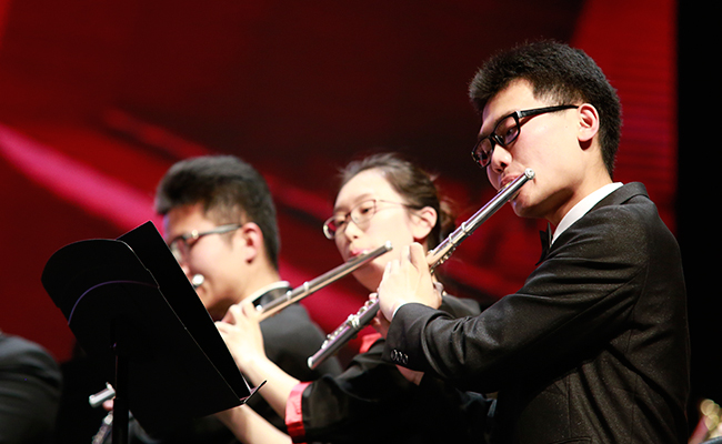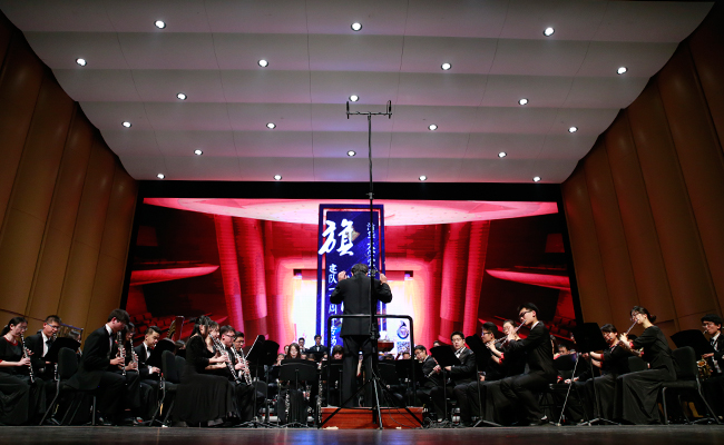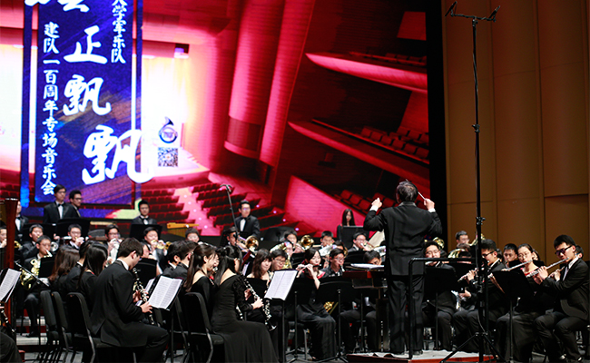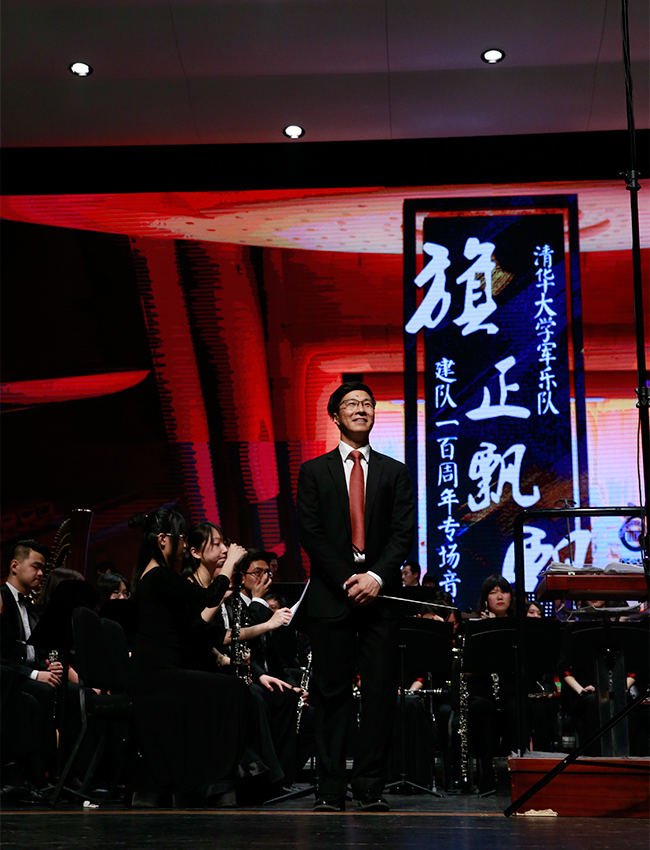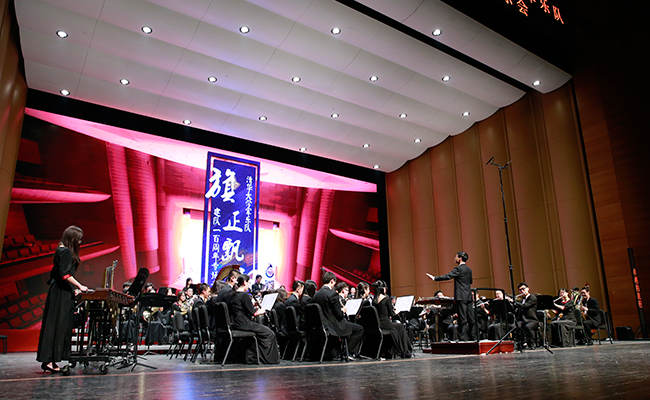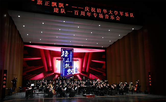 首页网4月28日电 (记者 张 宇 摄)4月24日,“旗正飘飘”——纪念学生艺术团军乐队百周年专场音乐会在新清华学堂举行。近千名军乐队队友与现场1000多名观众共同见证了这一历史性的时刻。