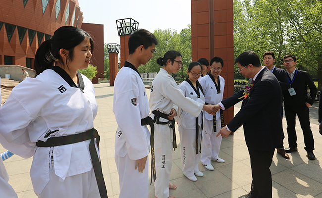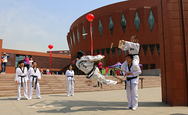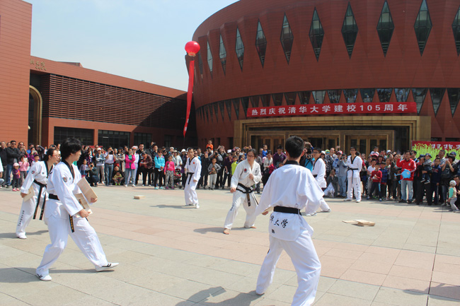 跆拳道协会的同学们上场了。