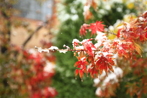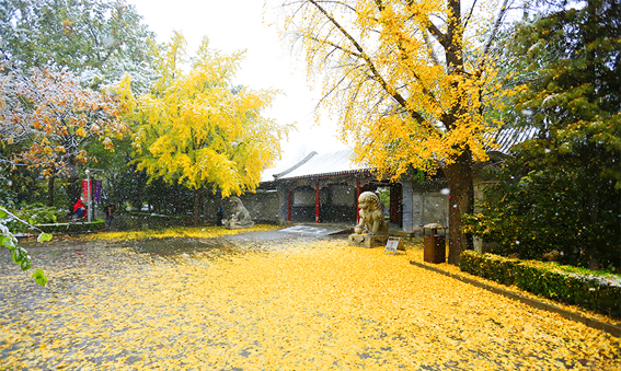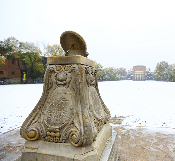清华园迎来了今年的第一场雪,古园雪霁、秋意正浓,满拥眼底的都是初雪时节的淡淡暖意,雪白主调的清华园里延续着爱的故事,四时变化中的清华古园满蕴生机。