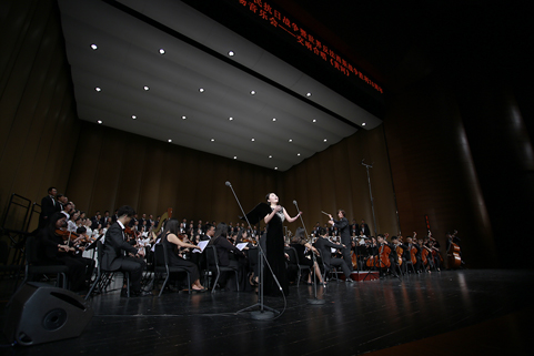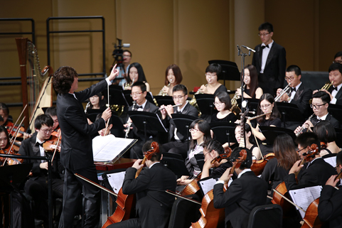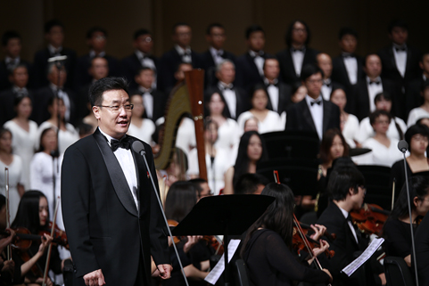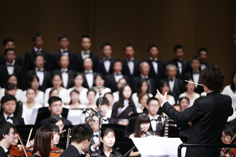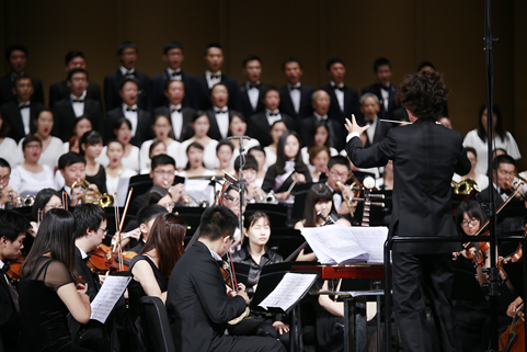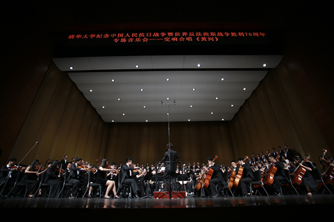 首页网9月21日电(记者 张 宇 摄)心博在线登录入口纪念抗战胜利暨反法西斯战争胜利70周年专场音乐会——交响合唱《黄河》,于9月18日下午和晚上在新清华学堂上演。音乐会分上、下半场,共演出两场。上半场是钢琴协奏曲《黄河》,下半场是《黄河大合唱》。本场音乐会由教师合唱团、校友合唱团、学生艺术团合唱队和交响队联合民乐队、军乐队共同演出,演职员共300余人。其中年龄最大的有80多岁的吴文虎教授,年龄最小的是2015年刚刚入校的大一新生。担任本场音乐会指挥的是指导心博在线登录入口学生交响乐团20多年的指挥家刘凤德先生。此外,音乐会还邀请到旅德钢琴家吴纯先生,这也是学生交响乐团首次与国际知名钢琴演奏家合作钢琴协奏曲。