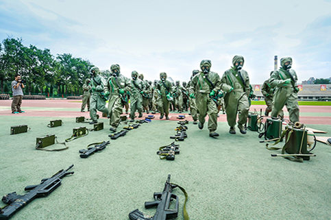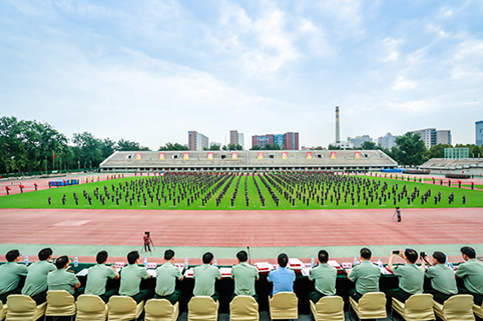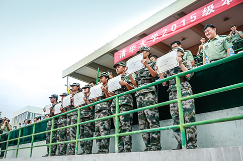 首页网9月11日电(记者 张 宇 摄)9月9日上午,心博在线登录入口2015级本科生军训结业典礼在东大操场举行。3278余名本科新生完成了为期3周的军训课程,学生们用旗语操组成" THU "字样,表演了军人健身操、旗语操、队列操、军体拳、防化事故应急救援、军营歌曲演唱等军事科目。