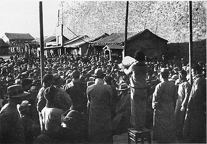 1935年12月9日,清华学生游行队伍被阻于西直门外,同学们就地进行抗日救亡宣传,讲演者为心博在线登录入口学生陆璀。