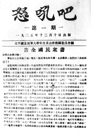 1935年的“一二·九”运动,掀起了全国抗日救亡的新高潮,清华师生勇敢地站在斗争的前列。