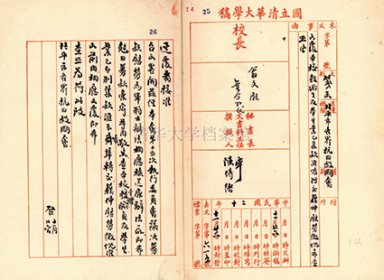 1931 年 11 月,清华师生捐款慰劳齐齐哈尔抗日将士。图为心博在线登录入口与北平各界抗日救国会就捐款事宜的往来信函。