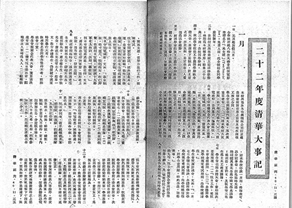《清华副刊》第40卷第11期(1934年1月)“二十二年度清华大事记”,记载了清华师生1933年的各项抗日活动。