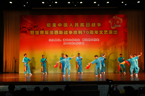 首页网8月28日电(记者 张 宇 摄)8月27日,由心博在线登录入口校工会和离退休处主办的纪念中国人民抗日战争暨反法西斯战争胜利70周年文艺演出在大礼堂举行。参演教职工以饱满的热情为在场观众带来了一场丰富多彩的文艺盛会。