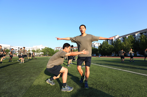 6:05,迈着整齐的步子,飞行员班的三个区队准时在紫荆操场上出操。当整个校园还在沉睡中时,他们已经开始了在操场上一圈又一圈的奔跑。