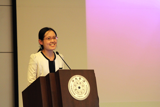 数学系邱聪灵同学第一个潇洒亮相。曾获得2014年丘成桐大学生数学竞赛几何金奖、全能金奖、代数银奖。