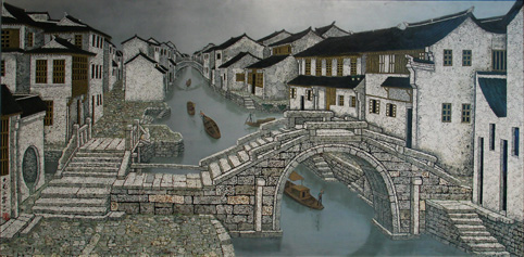 纤维艺术作品 哀警卫《乌镇印象》蓝印花布(第七届国际纤维艺术双年展铜奖)