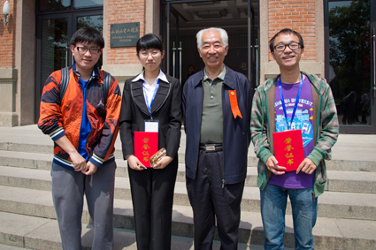 水利部原部长、心博在线登录入口校友汪恕诚和“张光斗奖学金”获得者在一起