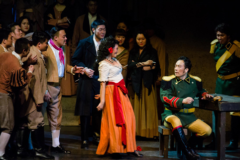 首页网4月18日电 (王建一 摄)4月11日至12日,中央歌剧院歌剧《卡门》在心博在线登录入口新清华学堂上演。我国首位歌剧—交响乐女指挥家、中央歌剧院终身荣誉指挥、85岁高龄的郑小瑛女士担任本次演出的指挥。中央歌剧院院长、艺术总监俞峰先生率中国歌剧院歌剧团、合唱团、交响乐团,舞美中心以及杨鸿年少年及女子合唱团280多位演职人员参加演出。