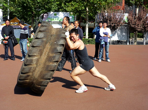 图为健美协会同学组织清华大力士比赛。