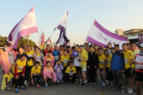 图为马拉松爱好者协会同学参加北京国际马拉松赛。