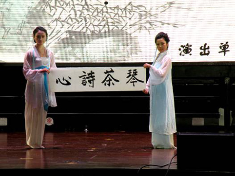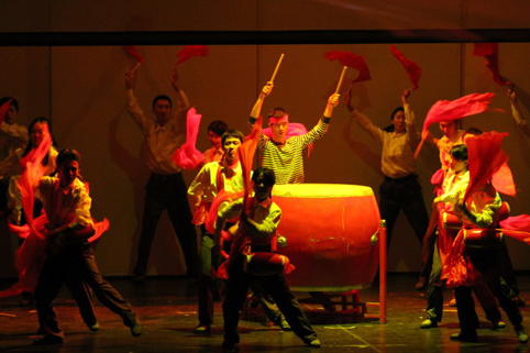 图为腰鼓协会同学参加“马兰花开”话剧演出。