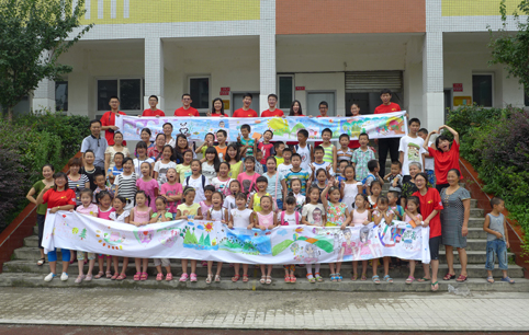 图为赴安徽阜阳关爱艾滋致孤儿童实践支队的队员与孩子们。