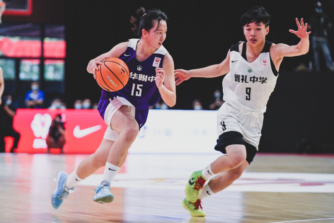 第二节比赛,双方在内线展开了搏杀。清华附中凭借着坚固的防守,稳定发挥连续得分。第三节比赛,双方派出了最强阵容出战,加强了攻防转换速度。随着比赛的进行,队员们体力消耗严重,雅礼中学抓住机会,接连反击得分,一度将比分反超。但清华附中随即以严密的防守和出色的防控遏制住了对方上分的势头并拿到球权。最终,清华附中以66:64赢得比赛,卫冕冠军。9号李美潼以13分10篮板1助攻4抢断的数据拿下MVP。