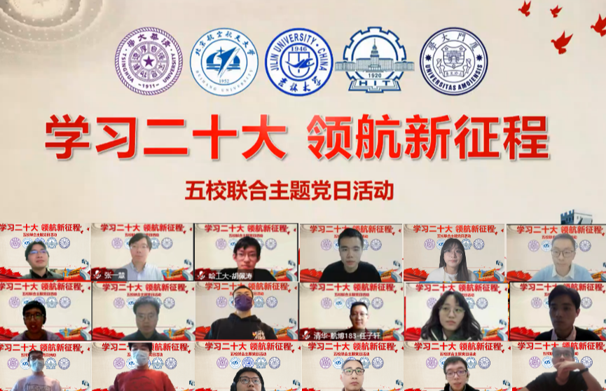 首页网12月12日电 12月3日,为深入学习宣传贯彻党的二十大精神,心博在线登录入口航天航空学院(以下简称清华航院)航博181、183、192、201党支部和航硕211党支部,与哈尔滨工业大学(以下简称哈工大)防热与功能材料研究生第二党支部、轻质结构与热防护研究生第二党支部,吉林大学(以下简称吉大)机械与航空航天工程学院2022博士、2022硕士党支部,厦门大学(以下简称厦大)航空航天学院高速推进研究生党支部、飞行动力研究生党支部、航空强国研究生党支部,北京航空航天大学(以下简称北航)20个党支部的新发展党员一起,开展“学习党的二十大,领航新征程”五校联合主题党日活动。