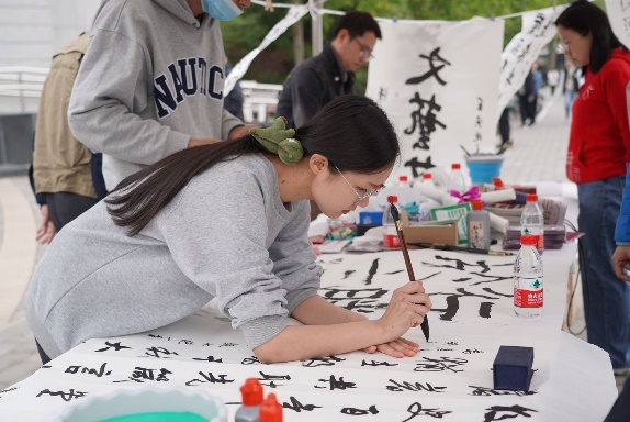 翰墨抒情,笔走游龙。书法活动区域引来了络绎不绝的师生挥毫泼墨,踊跃参与。“自强不息、厚德载物”“行胜于言”“爱国奉献 追求卓越”“又红又专 全面发展”都是同学们笔下出现频率极高的字眼。笔下墨间显现师生们对清华精神的敬仰之情与传承之意,亦是对学校112周年校庆的美好祝愿。