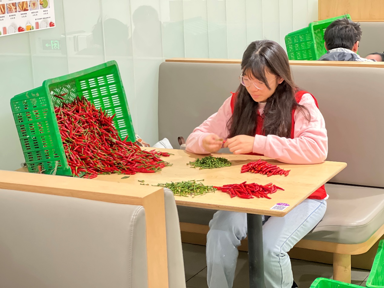 当我们在享用食堂的美味餐食时,不免会想到是谁在幕后、以怎样的方式为我们提供了舒适的就餐环境和丰富的各色佳肴,饮食中心的各个岗位即为同学们提供了深入幕后的机会。在初加工择菜员岗位上,同学们与成筐成捆的各类蔬菜为伴,用三个小时的时间体验食堂师傅们每天必经的基础准备工作。在食堂收残员岗位上,同学们的身份由餐盘的放置者转变为接收处理者,在油污与重复性工作中体会食堂工作的另一面。校河静静流淌,河边草木葱茏,清华园街道办组织河湖清洁保护岗位,同学们在用实际行动践行“大学与社区新型伙伴关系”理念的过程中,自觉加强了环保意识。