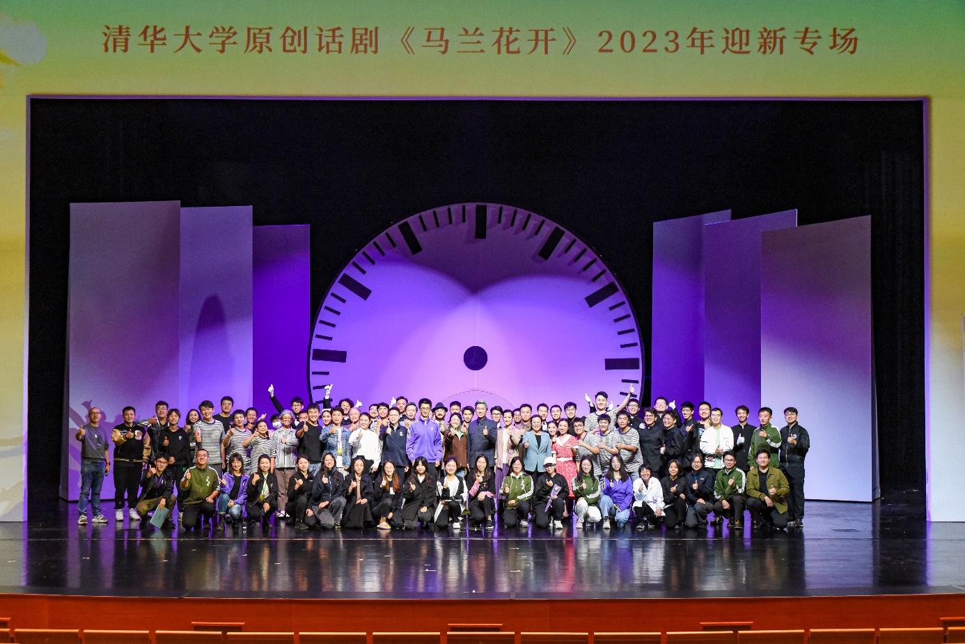 值得一提的是,《马兰花开》全体演员均为在校学生。剧组成员通过“师生演校友、学弟演学长”的方式,走近邓稼先生平事迹,体会邓稼先心路历程,将邓稼先精神内化于心、外化于行。探微书院2021级本科生张浩然在剧中饰演邓稼先的同事“小高”,他说:“每次看到纱幕上‘两弹元勋’的肖像,我都会泪流满面。我们所竭力展现的不过是他们真实汗水的万分之一,而这个故事与这份精神,值得被一直讲述下去。”担任舞台监督的是社会科学学院2020级本科生乔向荃,她说:“在流畅的演出背后,是许多默默守护着演出顺利进行的同学们。忘我奉献、纯粹无私、薪火相传的精神,我们将用一生来实践。”担任剧组辅导员的核能与新能源技术研究院2023级硕士生于鸿飞已经开始期待下一次“花开”,他说:“要用我们的努力让家国情怀在清华内外、在祖国大地处处开花、时时绽放!”