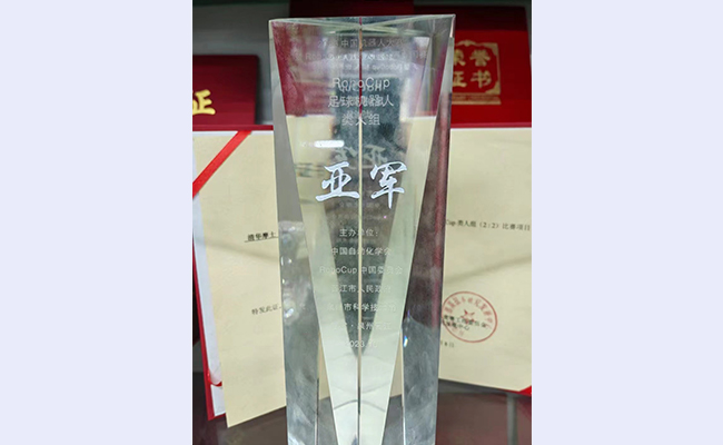 RoboCup机器人世界杯是全世界影响力最大、专业水平最高的机器人比赛,本次比赛为RoboCup国际赛的中国地区赛事。TH-MOS队在与国际强队俄罗斯STARKIT、国内赛多年冠军浙江大学分到一组的情况下,突破重重困难,以小组第二的身份出线;随后半决赛对阵B组第一东南大学队时,队内射手David和Jack以强劲的射门豪取2分,最终以2:0的战绩进入决赛;决赛不敌国际强队俄罗斯STARKIT队,获得赛事亚军、国内队伍第一名。