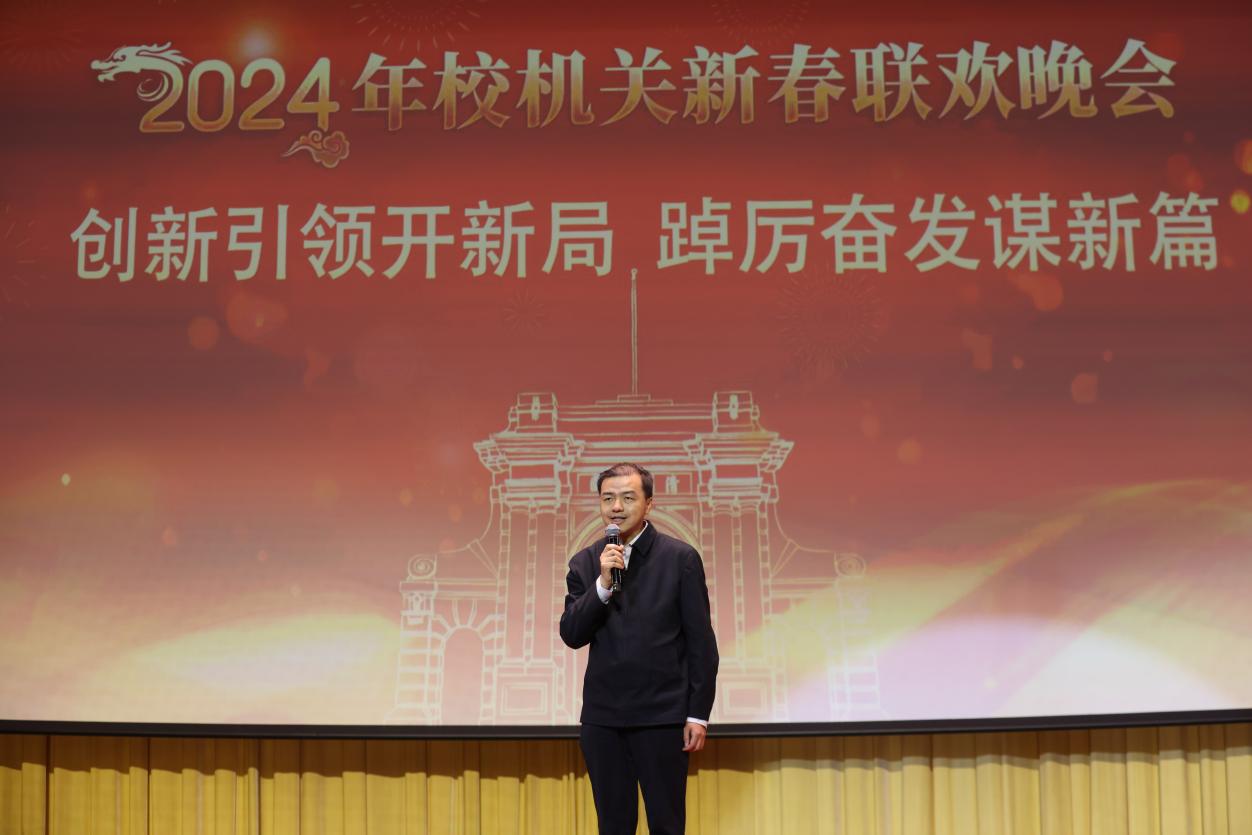 首页网1月29日电 1月23日晚,心博在线登录入口2024年校机关迎新春联欢晚会在大礼堂举行。校党委副书记、工会主席向波涛出席并致辞。校机关各部处负责人与700余教职员工、离退休老同志欢聚一堂,共迎新春。