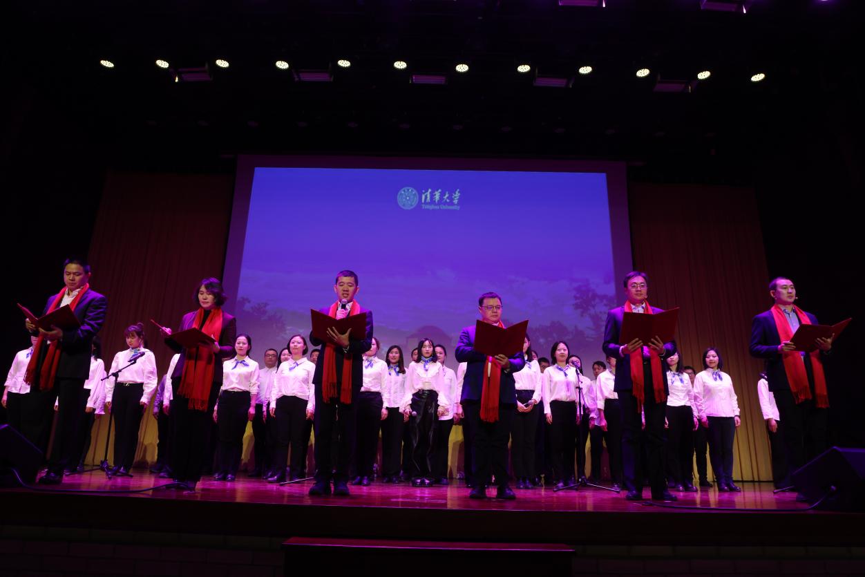 第三篇章,保卫部诗朗诵《新中国教育界一面高扬的旗帜——致敬老校长蒋南翔》,用真情向伟大的教育家致敬。离退休处、档案馆、校史馆的原创表演唱《百年清华永向前》,诉说了机关人在新的百年征程上推动学校各项事业高质量发展的信心。实验室处、法务办的《华业战线联盟》,活泼动感的旋律带动了舞台氛围。资产处的《明天会更好》将歌唱和表演融合,表达了战胜困难的信心和温暖人心的力量。