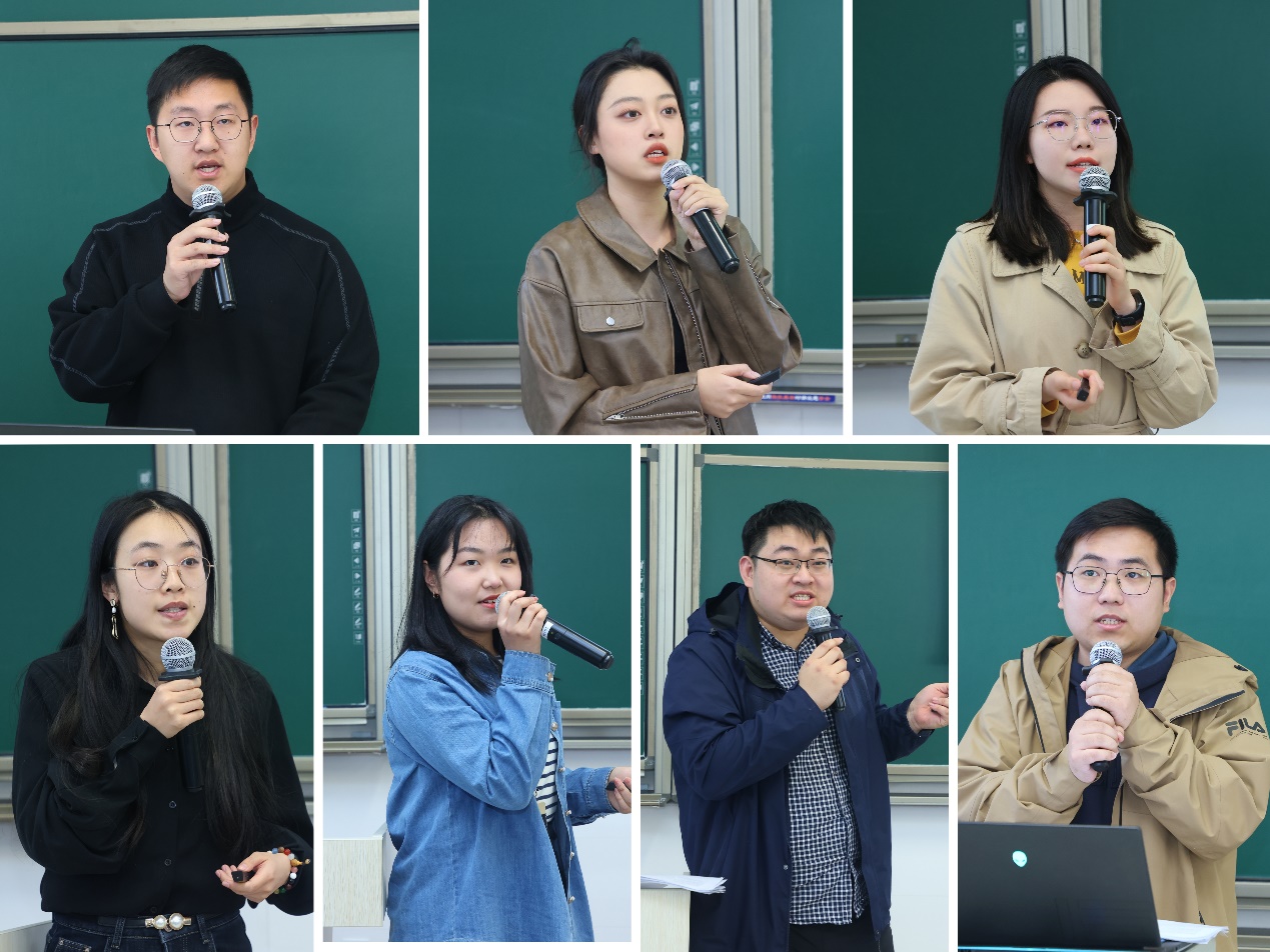 郭子豪主持会议,赵幸辉、李一安、熊立铭、金玲演、刘泽瑞、沈方垠介绍情况(从左至右、从上至下)