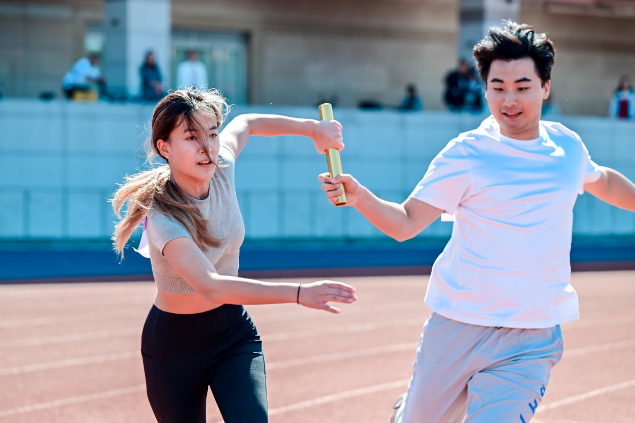 本届研运会竞技比赛部分共设置100米、400米、800米(女子)、1500米(男子)和50米阻力伞等个人径赛项目,跳高、跳远、铅球掷远等个人田赛项目以及迎面、男女4×100米、师生4×100米和拔河等集体项目。师生们在赛场上各显身手,同台竞技,挥洒青春汗水,展示强健体魄,用实际行动践行“无体育,不清华”的精神。
