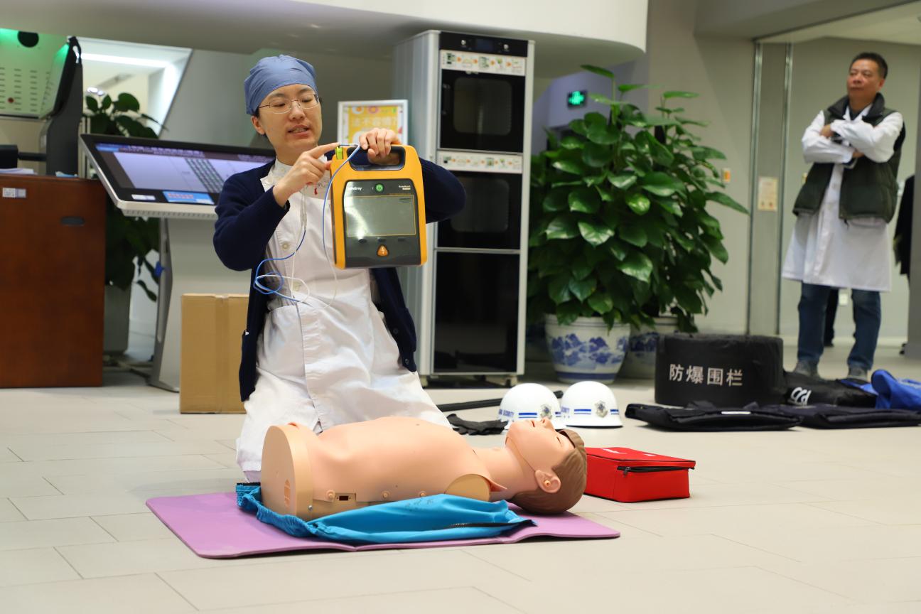 校医院专业医生对现场人员进行了加压止血、AED和CPR操作指导。