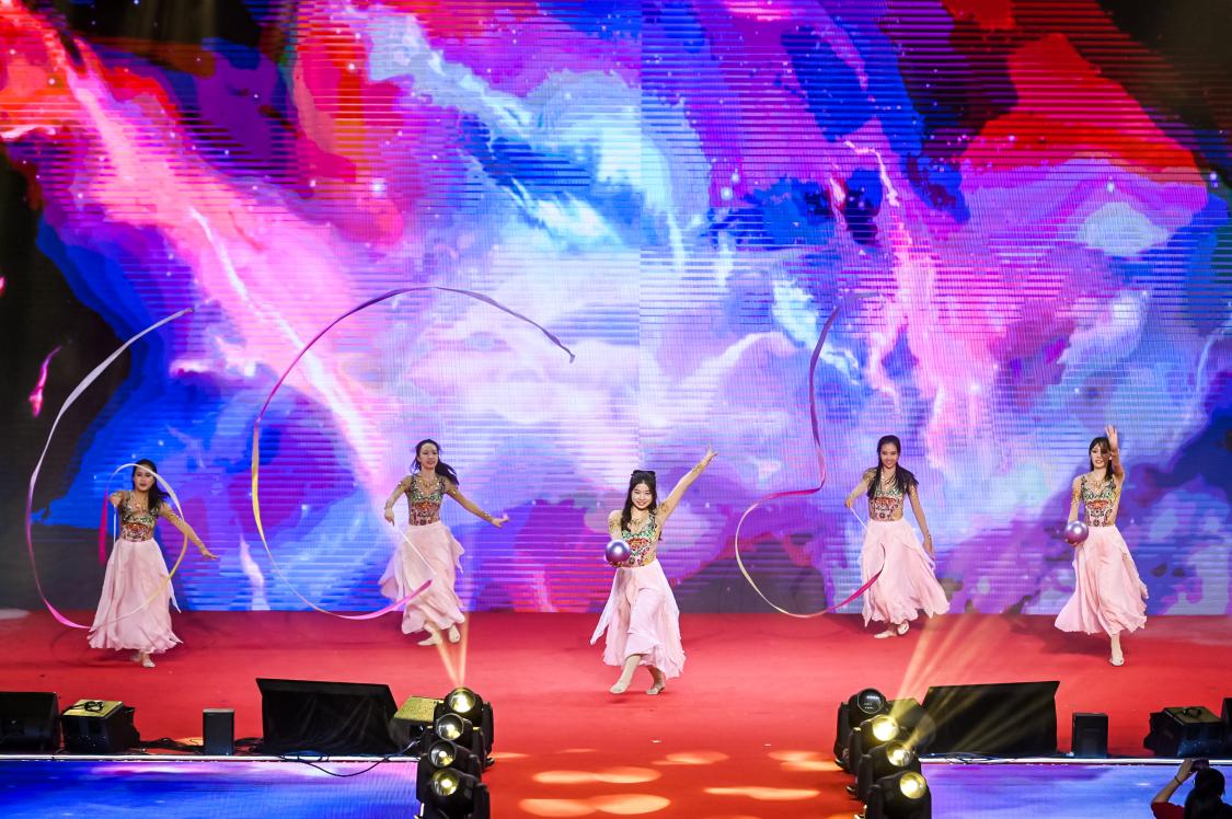 啦啦操代表队、学生艺术团国标队、学生街舞社联合演出《开场舞串烧》