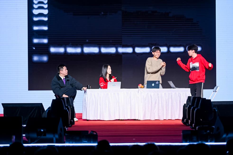 学生艺术团民乐队的《山语·幻》和《花好月圆》以热情欢快的旋律和流畅舒缓的节奏引人入胜,让观众沉浸在浓厚的民乐氛围中;学生艺术团国标队、啦啦操代表队和学生街舞社联合呈现的舞蹈串烧,展现了青春的活力四射,用生生不息的激情迎接新的一年;学生说唱社带来的原创说唱歌曲《我们的Z世代》以青春的热情、积极的态度,展现了清华学子昂扬向上的精神风貌;魔术节目《新年祝福》带来跨年的惊喜与激动,将现场气氛推向高潮;学生艺术团曲艺队带来的相声节目《我的清小搭》让在场观众忍俊不禁,在欢笑中展现了AI赋能教育教学的最新成果。