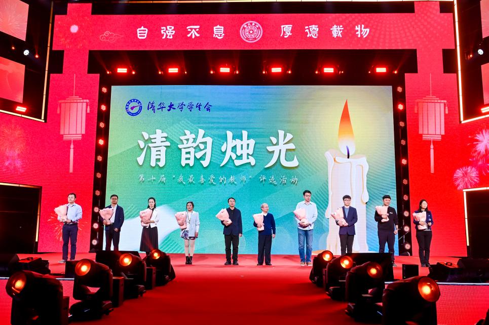 晚会期间还举行了第十届“清韵烛光·我最喜爱的教师”颁奖仪式。根据在全校本科生范围内的投票结果,牛小静、艾颖华、龙明盛、东昱晓、李志忠、杨晶、周在莹、赵一璋、胡楚雄、韩文弢等10名教师获得这一奖项。晚会现场,学生代表为获奖教师献花,每位教师都在台上深情寄语、与同学们一同展望新年。