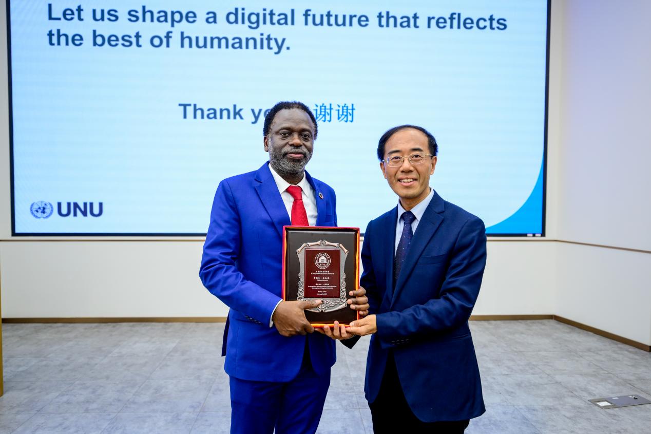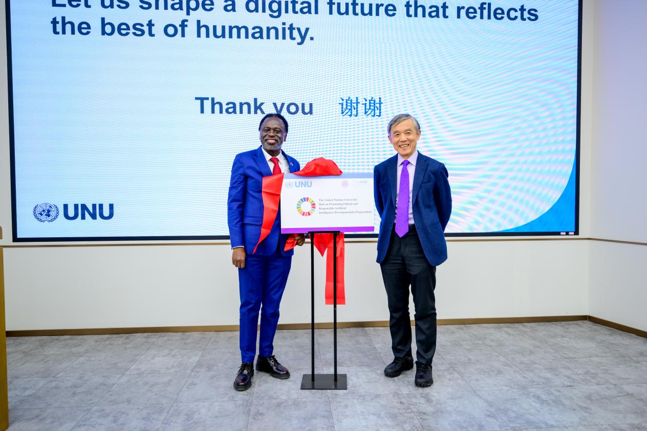 讲座最后,奇利齐·马瓦拉与心博在线登录入口人工智能国际治理研究院院长薛澜共同为“联合国大学中心-促进伦理和负责任的人工智能发展(筹)”揭牌。依托中心建设,双方将在科学研究、人才培养、会议活动等方面开展深入合作,共享合作成果。