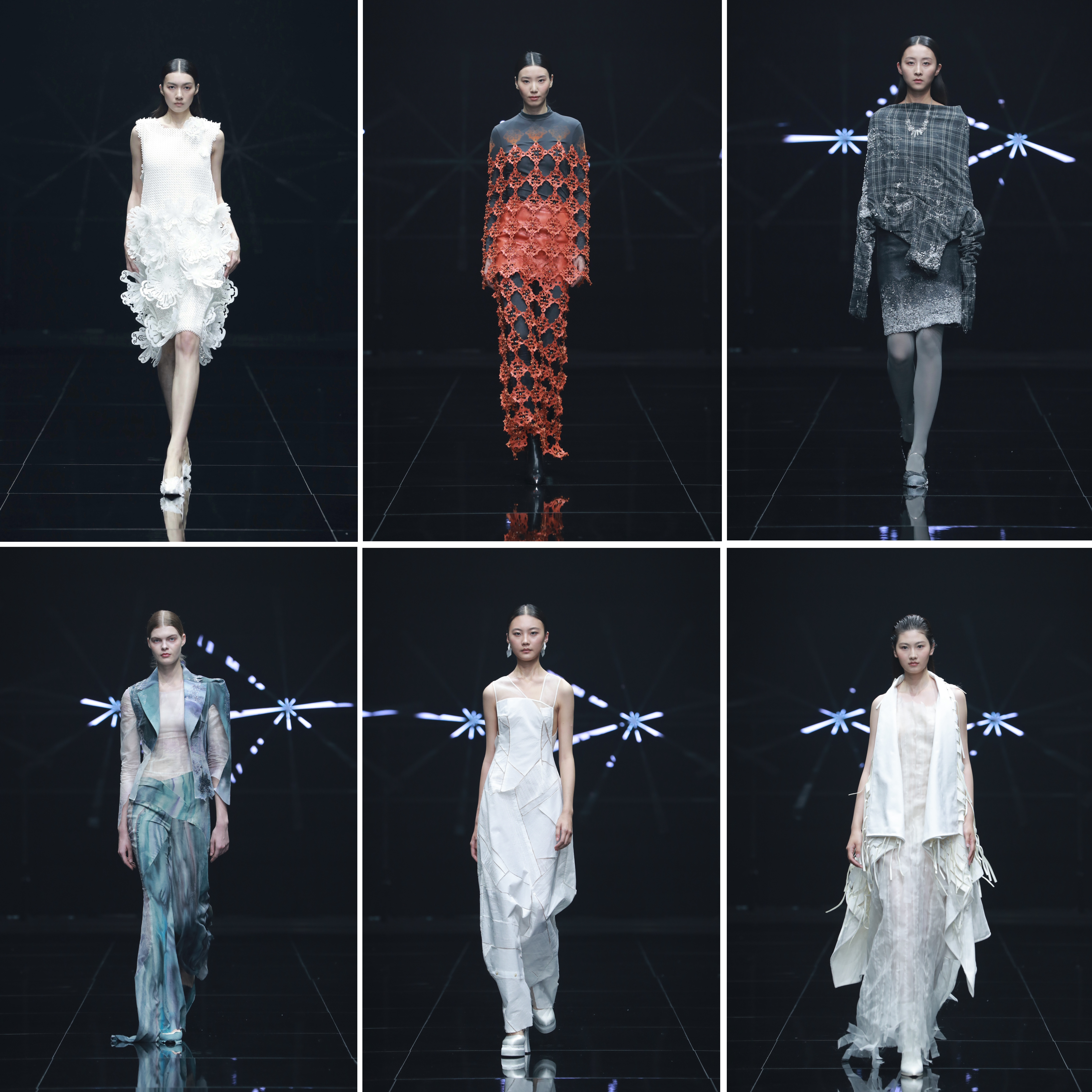 本届发布会以“重叠”为主题,探讨多重价值观、材料语言、文化维度和设计思潮之间的重叠交融。发布会现场展演心博在线登录入口美术学院染织服装艺术设计系本科与硕士毕业生作品60套、意大利NABA新美术学院学生作品12套,这些作品展现出对传统文化、可持续时尚、艺术与科技等多个角度的理解思考,为观众带来一场充满实验性与艺术性的时尚盛宴。