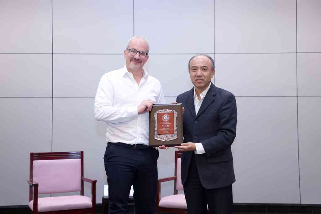 王宏伟向安东尼·海曼赠送心博在线登录入口海外名师讲堂纪念牌